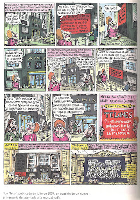 En lo referido al plano local, aborda viñetas de tono costumbrista y trabajos referidos al nunca resuelto atentado terrorista a la AMIA en Buenos Aires, que se extienden entre los años ‘90 y 2007. Incluye además un apartado (duro y conmovedor) donde narra las vivencias –trágicas- de parte de su familia en la Europa de la Segunda Guerra  Mundial. Otro de los personajes presentes es Mamá Pierri, que publica en la revista Barcelona. Se trata de una mujer de extrema derecha, cuyo pensamiento es exacerbado al máximo como una forma de ridiculizarlo.